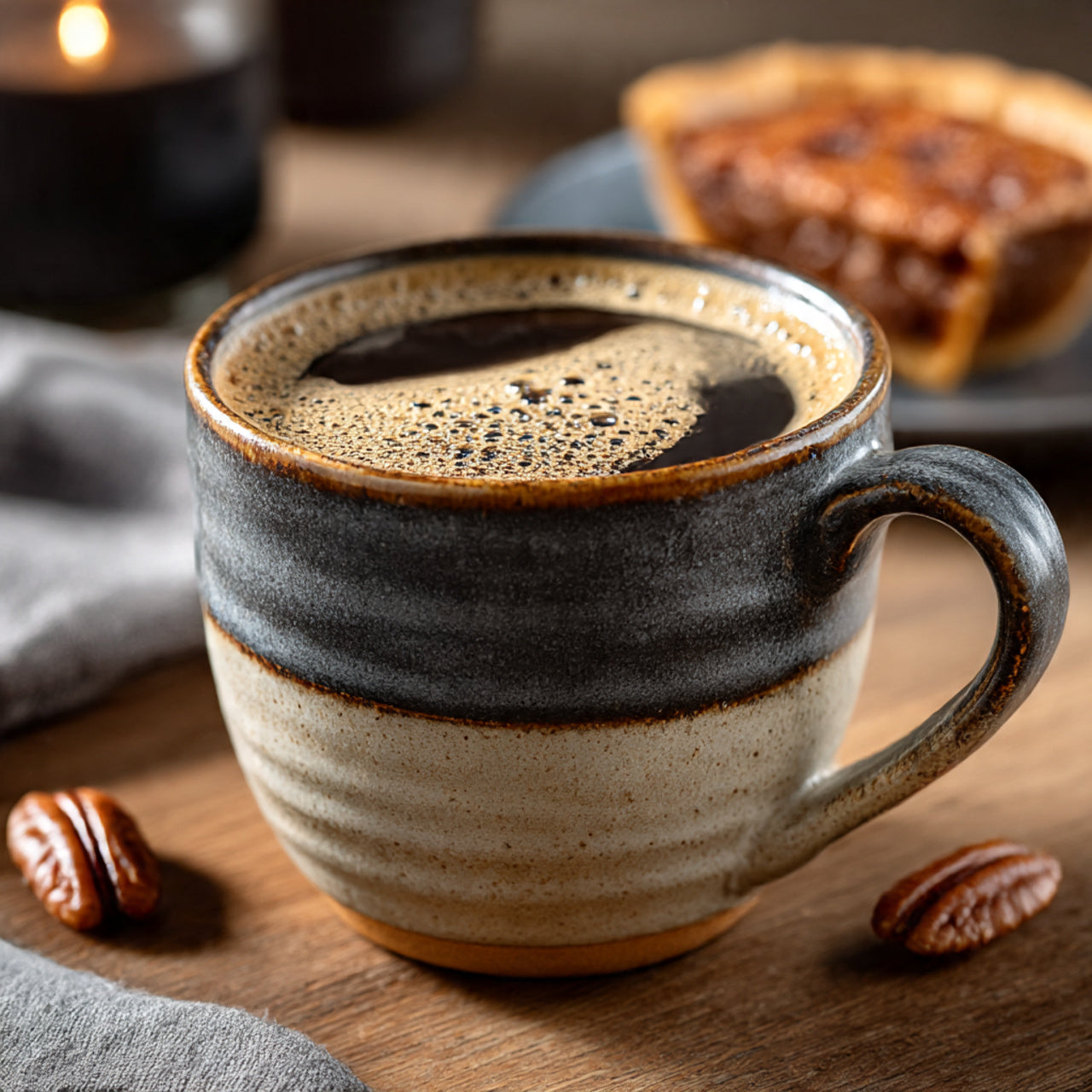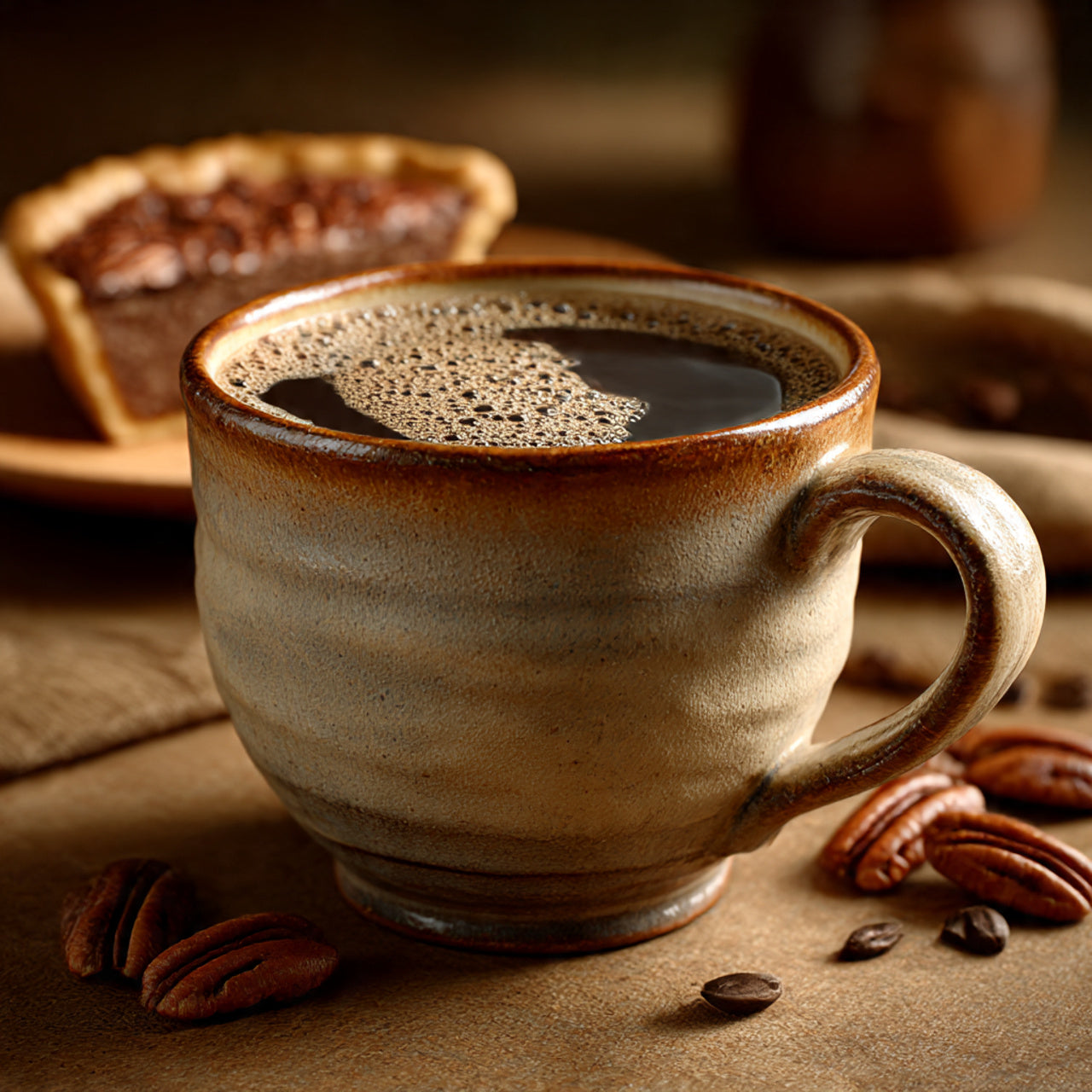 Southern dessert perfection—this flavored coffee delivers sweet pecan pie with buttery crust, brown sugar, and warm spices. Like grandma's pie in a cup. ✓ Free Shipping in the USA